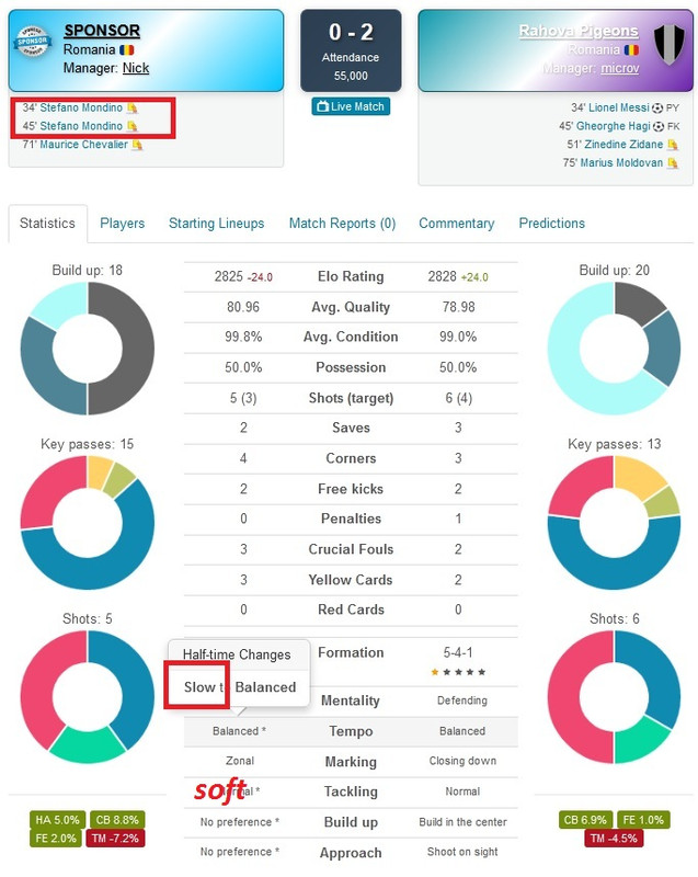on 02-02-2026 19:29:50 (12 hours ago) This is the first time I've seen with my own eyes on the slow/soft tactic a player receives two yellow cards and is limited in the first half. I think you need to work on the football simulator engine! This is not acceptable if on such a tactic a player is eliminated, what tactic should you play so as not to risk his elimination? NICMO